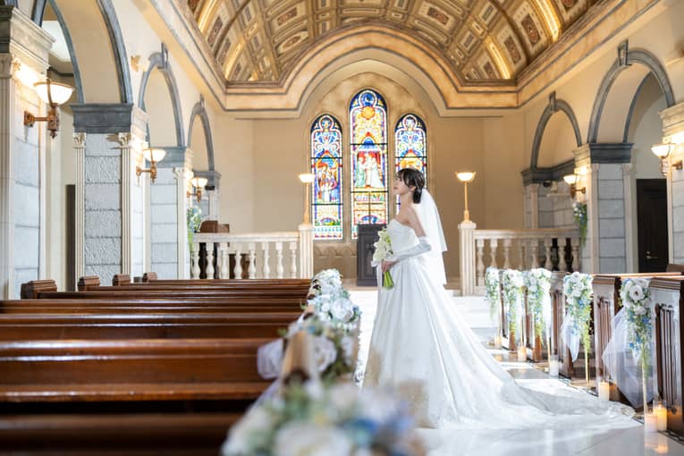 天井高8mの荘厳な雰囲気が漂う本格チャペル
